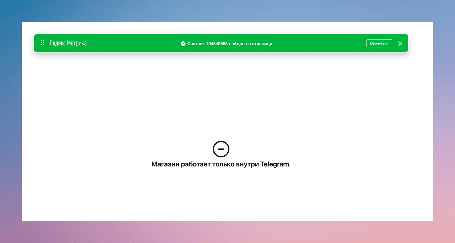 Пример сообщения об успешнйо интеграции Яндекс.Метрики в TeleCart